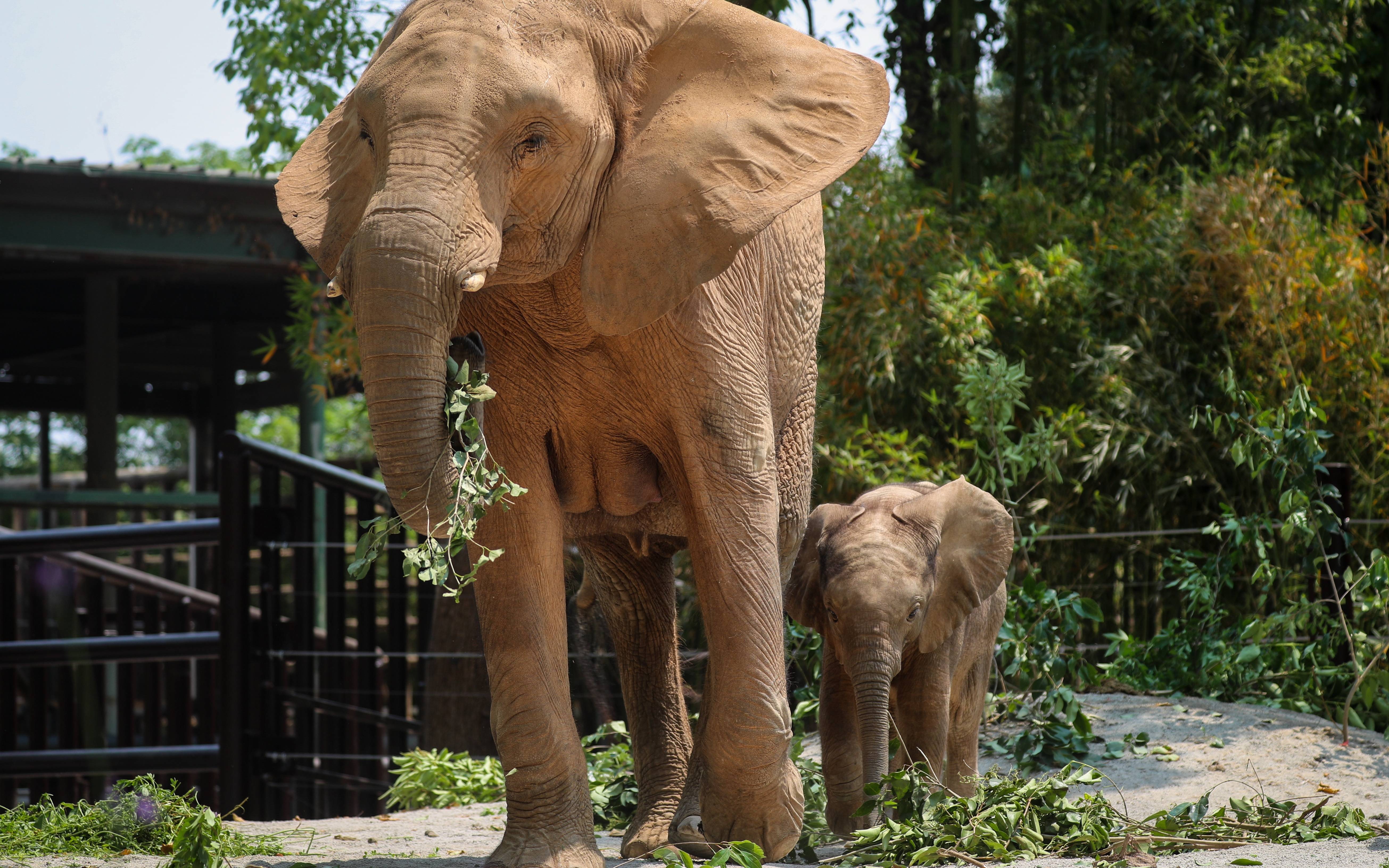 端午假期技能,上海野天真物园华东地区出生的首胎非洲象宝宝厚爱和旅客碰面。上野供图