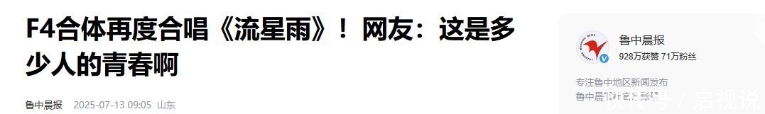 部分参考贵府鲁中晨报|F4合体再度齐唱《流星雨》!网友:这是若干东谈主的芳华啊