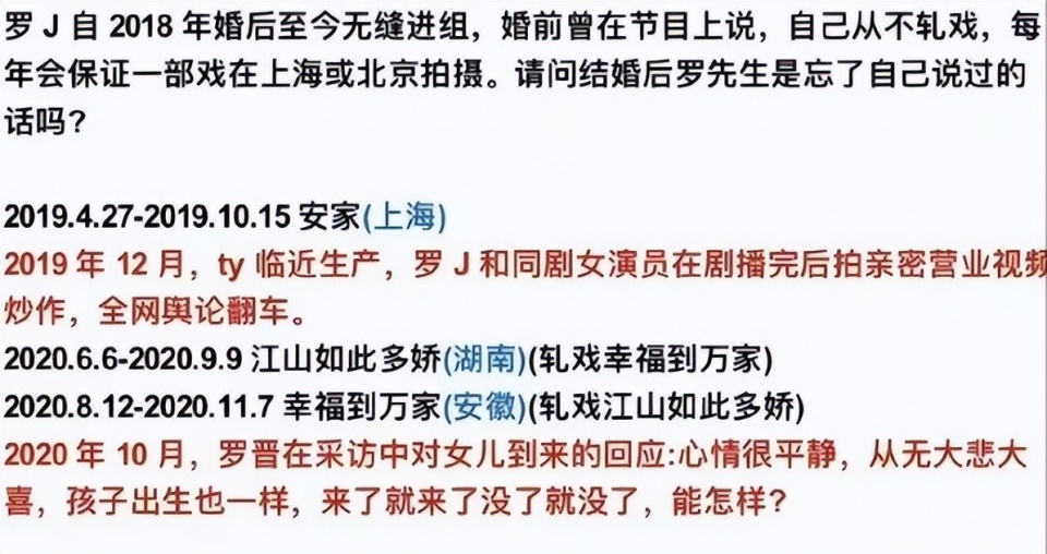 天然,也有复旧罗晋的网友,梳理出了一份不同的行程表。