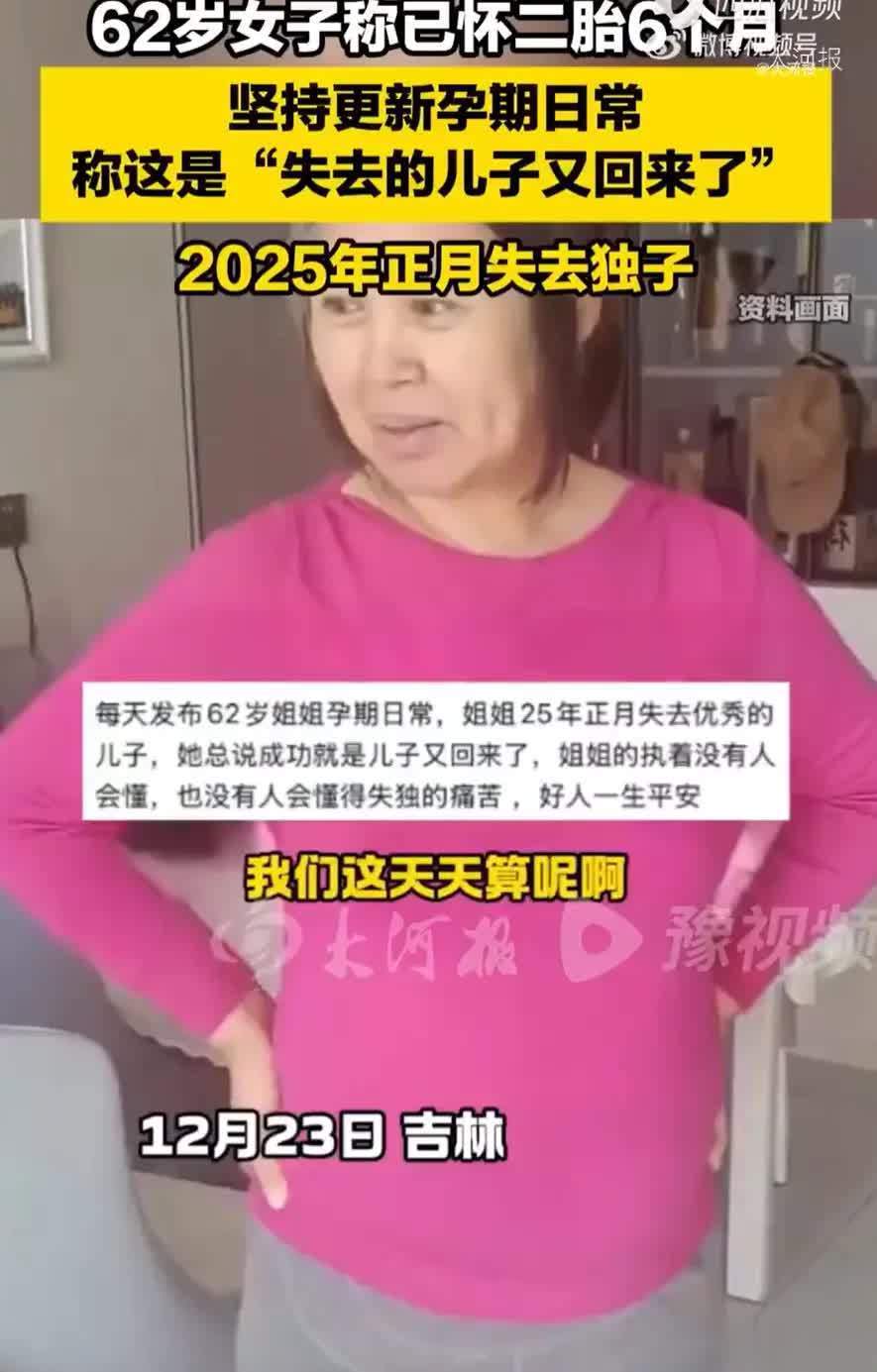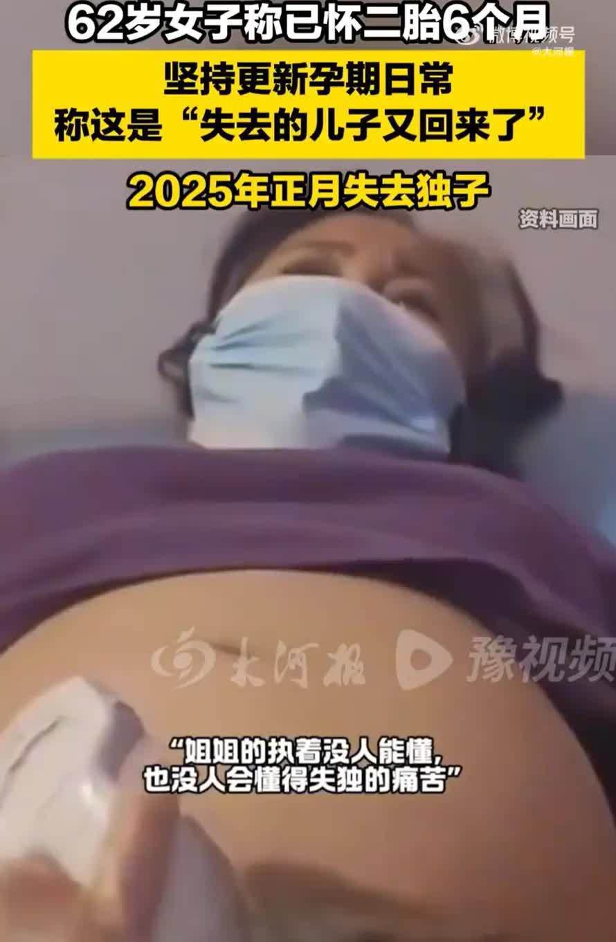 她的妹妹向外界解说,姐姐本年62岁,蓝本的大犬子在本年正月磨折离世。那之后,姐姐一直千里浸在悲悼中,很难走出来。如今顷刻间怀上孩子,她嘴里总念叨一句话:胜仗等于犬子追念了