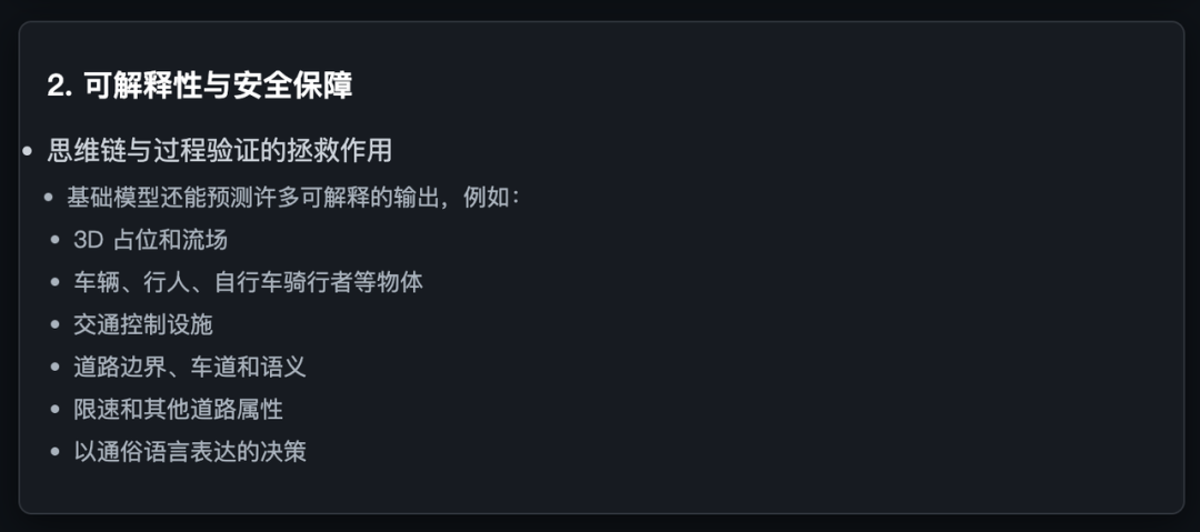 在安全层面,特斯拉FSD的“可讲明中间层”提供了监管和考证的基础。