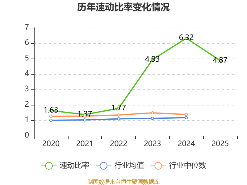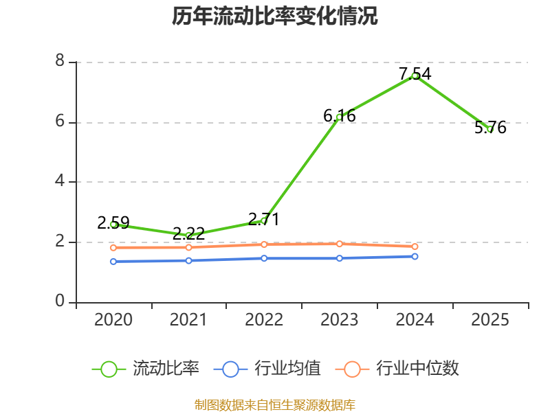 2025年,公司流动比率为5.76,速动比率为4.87。